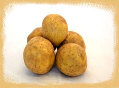 клубни овальные, средние; глазки мелкие, размер клубней от среднего до крупного; кожура желтая, гладкая; мякоть желтая; масса товарного клубня 100-145 гр.