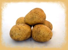 клубни продолговато овальные, средние; глазки мелкие; кожура желтая, гладкая; мякоть желтая; цветки белые, масса товарного клубня 95-130 гр.